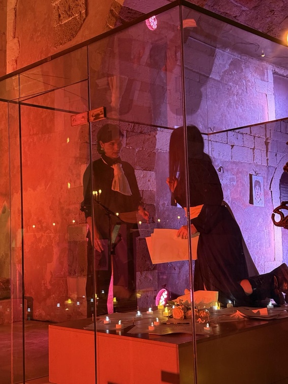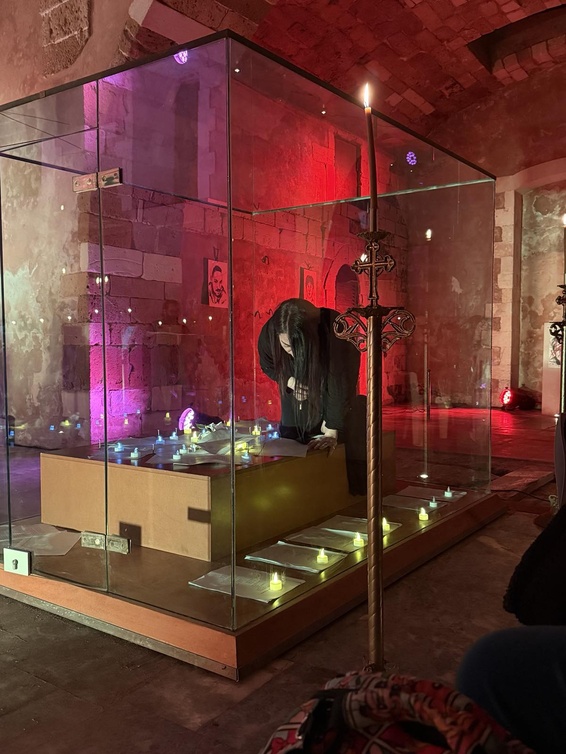 Παράλληλα, υπήρχε και μια ακόμη πρόκληση: να διασφαλίσουμε ότι δεν θα υπάρξει καμία παρερμηνεία ή υπόνοια πως η παράσταση κινείται σε «αιρετικά» πλαίσια. Ειδικά λόγω της χρονικής περιόδου της Μεγάλης Εβδομάδας και των στοιχείων που χρησιμοποιούνται – όπως το μανουάλι και τα πορτραίτα – θα μπορούσε εύκολα να παρεξηγηθεί ή να στοχοποιηθεί.