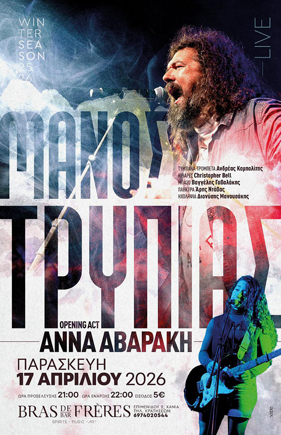 Μια ξεχωριστή μουσική βραδιά ετοιμάζεται στα Χανιά, με τον Μάνο Τρυπιά να ανεβαίνει στη σκηνή του Bras de Frères, την