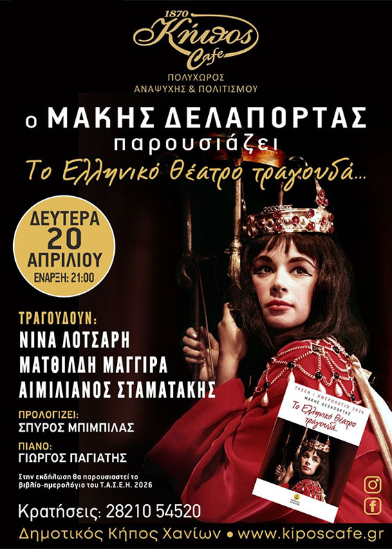 Μια ξεχωριστή μουσική βραδιά, με την υπογραφή του Μάκη Δελαπόρτα, έρχεται να φωτίσει τη σκηνή του ιστορικού «Κήπος Café» στον Δημοτικό Κήπο Χανίων. Η εκδήλωση θα πραγματοποιηθεί τη