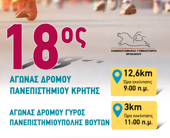 Αγώνας δρόμου σε απόσταση 12,6km & 3km περιμετρικά των κτιρίων της Πανεπιστημιούπολης.