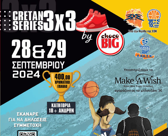 Η φετινή διοργάνωση του Τουρνουά 3×3 Basketball «Cretan Series» υποστηρίζει τον μη κερδοσκοπικό οργανισμό «Make-Α-Wish».