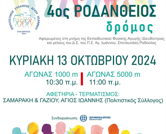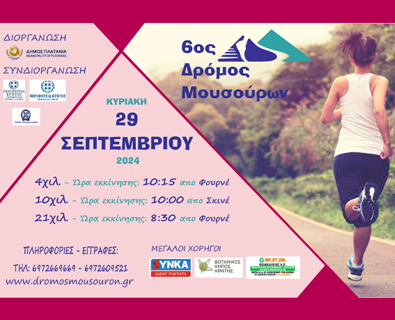 Από τον Δήμο Πλατανιά, σε συνεργασία με το Σύλλογο Δρομέων Υγείας Χανίων και συνδιοργανωτή την Περιφέρεια Κρήτης.