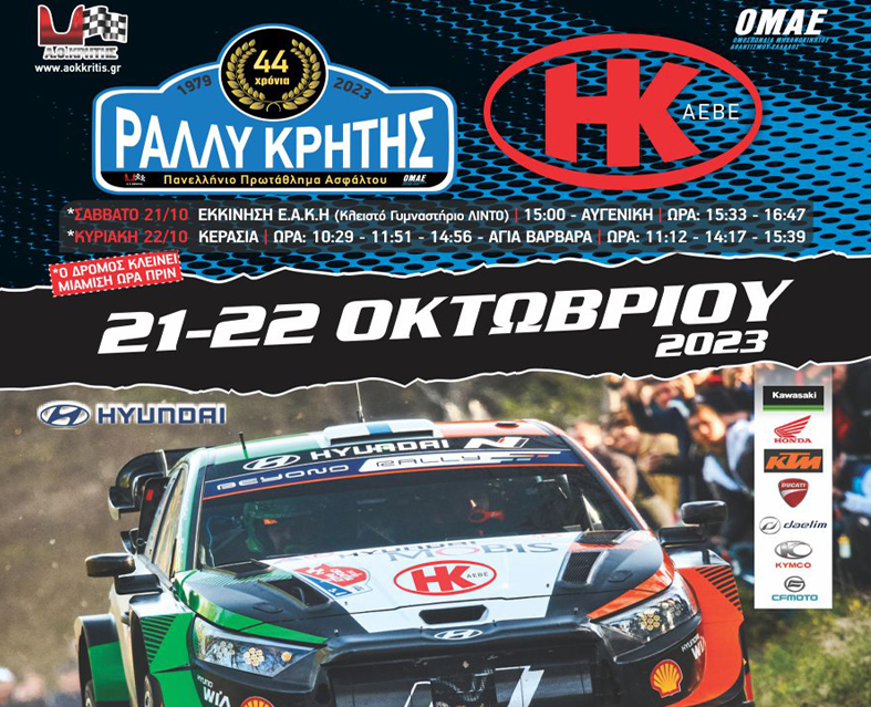 Διεξαγωγή του “44ου Η&Κ ΑΕΒΕ Ράλλυ Κρήτης” με το Πανελληνίο Πρωτάθλημα Ράλλυ Ασφάλτου και το Κύπελλο Ράλλυ Κρήτης 2023