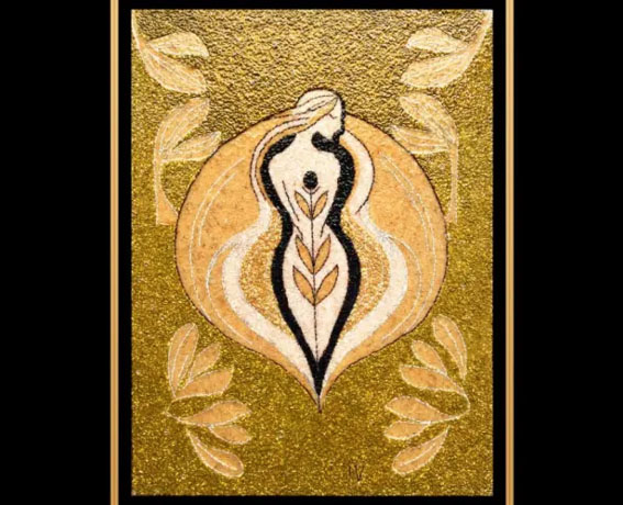 Παρουσιάζει έργα ψηφιδωτής τέχνης με πρωταγωνιστή τον κόκκο ρυζιού πάνω σε ξύλο.