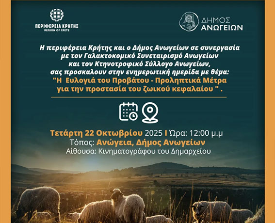 Η ενημέρωση και η πρόληψη αποτελούν το ισχυρότερο “αντίδοτο” για τη διασφάλιση του μέλλοντος της κρητικής κτηνοτροφίας.