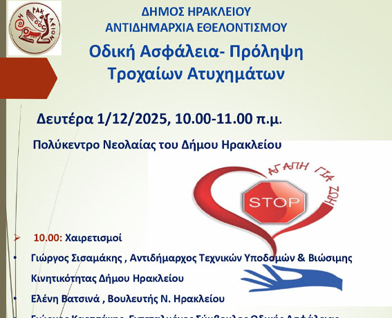 Μετά το πέρας των ομιλιών, θα τοποθετηθεί αναμνηστική πλακέτα εις μνήμη των θυμάτων τροχαίων δυστυχημάτων.