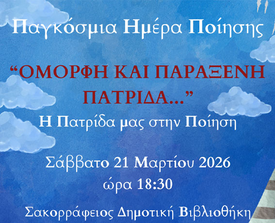 Η εκδήλωση θα πλαισιωθεί από τον Μουσικό και Λαογραφικό Σύλλογο «Τεχνών Σπουδή» με ερμηνεία μελοποιημένης ποίησης.
