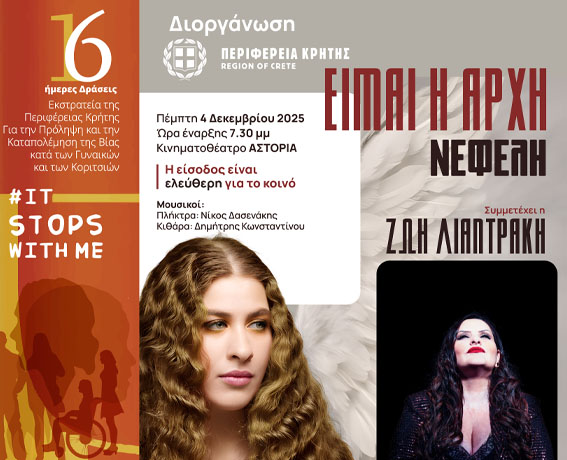Στις 20:00, στην Αίθουσα «Παντελής Πρεβελάκης» του Ωδείου Ρεθύμνου (Εμμ. Βερνάρδου 2, Παλιά Πόλη).