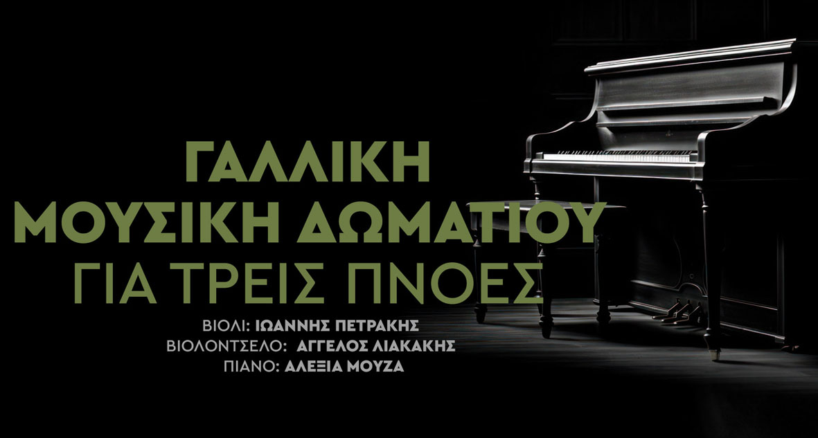 Στη σκηνή θα βρεθούν ο Ιωάννης Πετράκης στο βιολί, ο Άγγελος Λιακάκης στο βιολοντσέλο και η Αλεξία Μουζά στο πιάνο.
