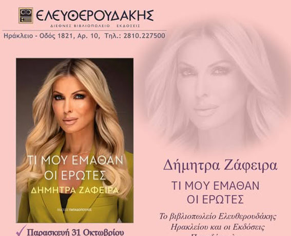 Η συγγραφέας θα παρευρεθεί στην εκδήλωση, θα συνομιλήσει με το κοινό και θα υπογράψει αντίτυπα του βιβλίου της.